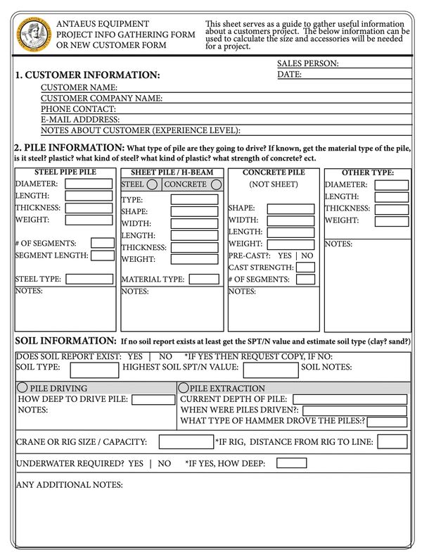 Every visit to a pile driving site is an opportunity to collect very useful information. The information collected on this guide can be used to debug many problems. Each item on this sheet was well thought out with purpose, this is not a random time wasting exercise to fill this out. For example, a single picture of the jaws examined by a person with experience can determine quickly if the equipment is safe to continue using. In addition, several areas of the sheet can verify safety concerns, proper equipment use, as well as information to generate a case study of the site and marketing photos. If you fill this form out and stay dedicated to doing this each time you visit a site then over time you will be able to look back at past situations and have the data you need to help future similar projects that will likely occur.